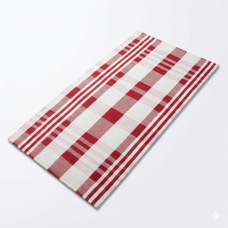Engineered for high-volume retail, this classic buffalo plaid rug is a staple for Farmhouse and Holiday decor collections.