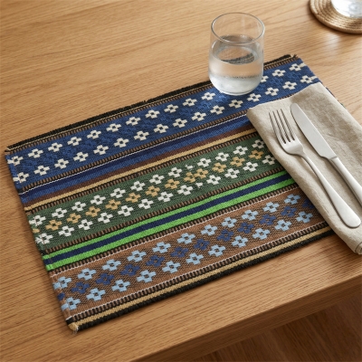 Boho Geometric Pattern: Decorative woven motifs bring a distinctive ethnic and handcrafted look to the table.