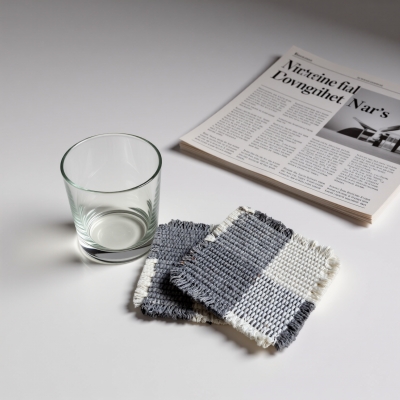 Modern Black & White Woven Coasters for Stylish Tabletops