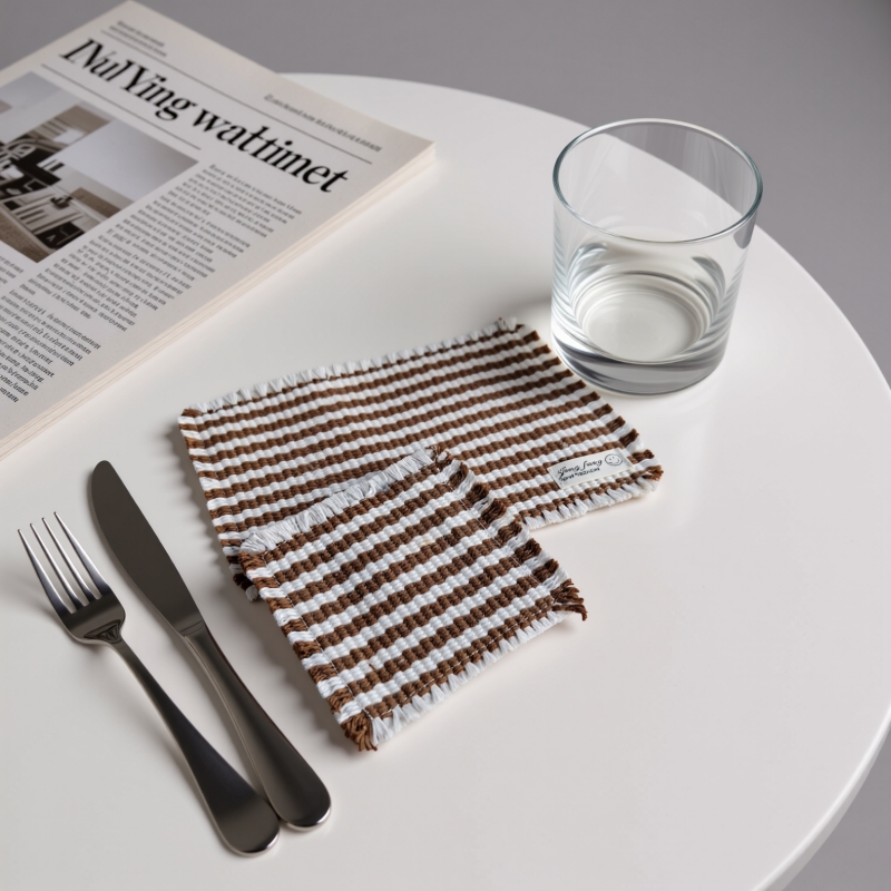 Add a neat and cozy touch to dining tables, coffee tables, and kitchen spaces with this Brown and White Striped Woven Placemat. Featuring a clean horizontal stripe design and soft woven texture, it offers both decorative appeal and practical tabletop protection for everyday dining use.