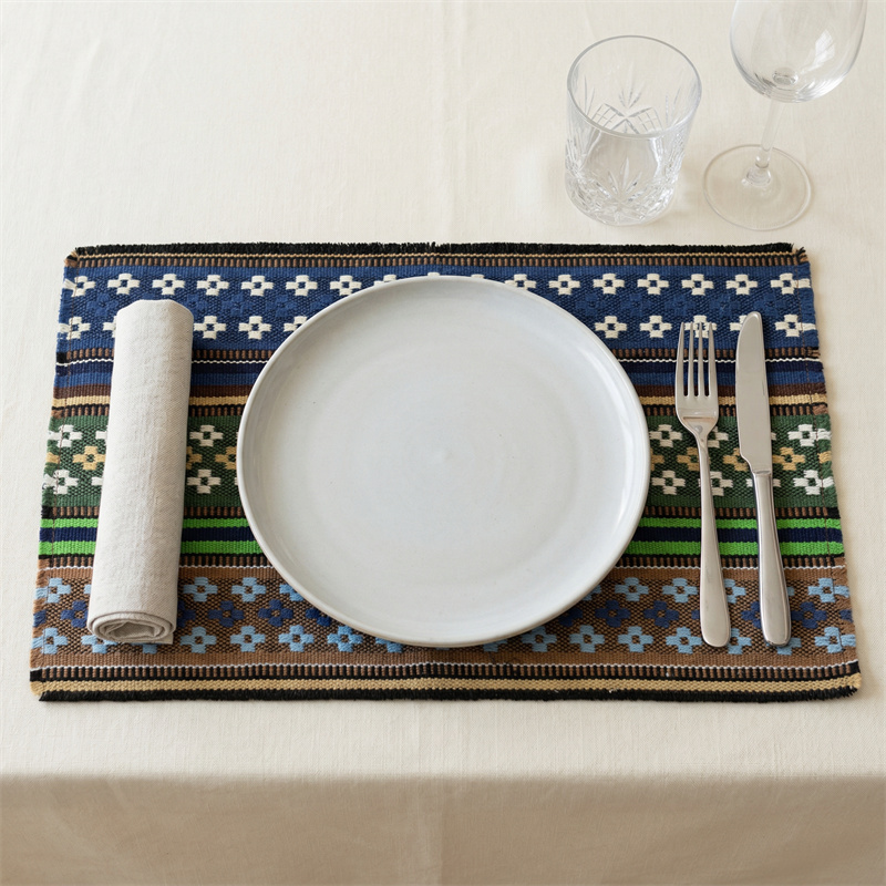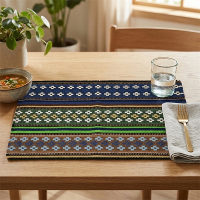Boho Geometric Pattern: Decorative woven motifs bring a distinctive ethnic and handcrafted look to the table.