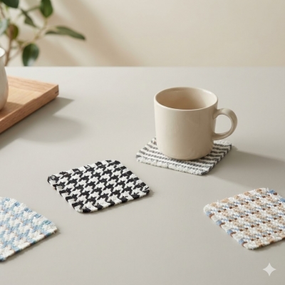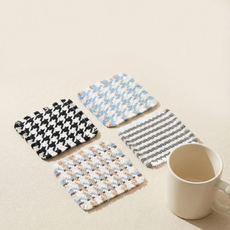 Bring texture and variety to coffee tables, dining tables, and kitchen spaces with this Assorted Pattern Woven Drink Coaster Set. Designed with mixed woven patterns and soft neutral color combinations, these textile coasters combine decorative charm with practical tabletop protection for modern home collections.